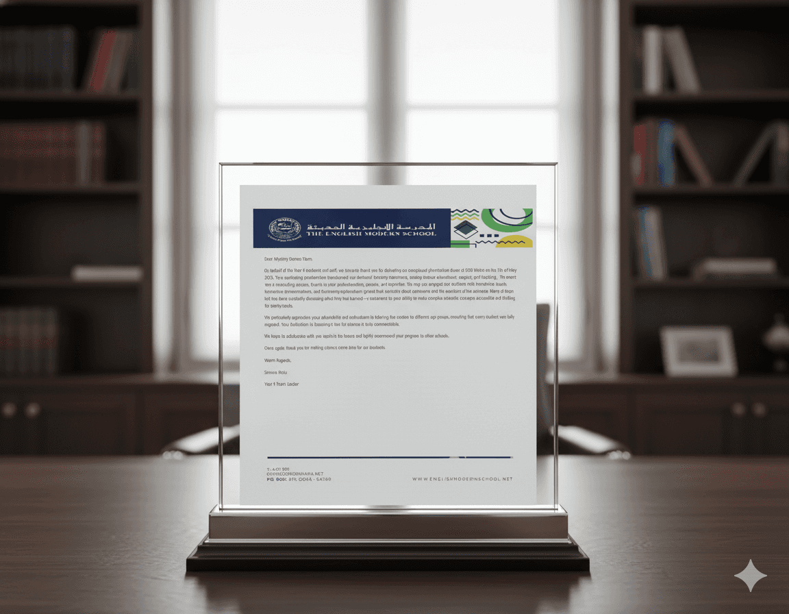 On behalf of the Year 4 students and staff, we sincerely thank you for delivering an exceptional planetarium show at EMS Wakra on the 7th of May 2025. Your captivating presentation transformed our students' leaming experience, making science educational, magical, and inspiring. The event was a resounding success, thanks to your professionalism, passion, and expertise. The way you engaged our students with immersive visuals, interactive demonstrations, and fascinating explanations ignited their curiosity about astronomy and the wonders of the universe. Many of them left the dome excitedly discussing what they had learned-a testament to your ability to make complex scientific concepts accessible and thrilling for young minds.