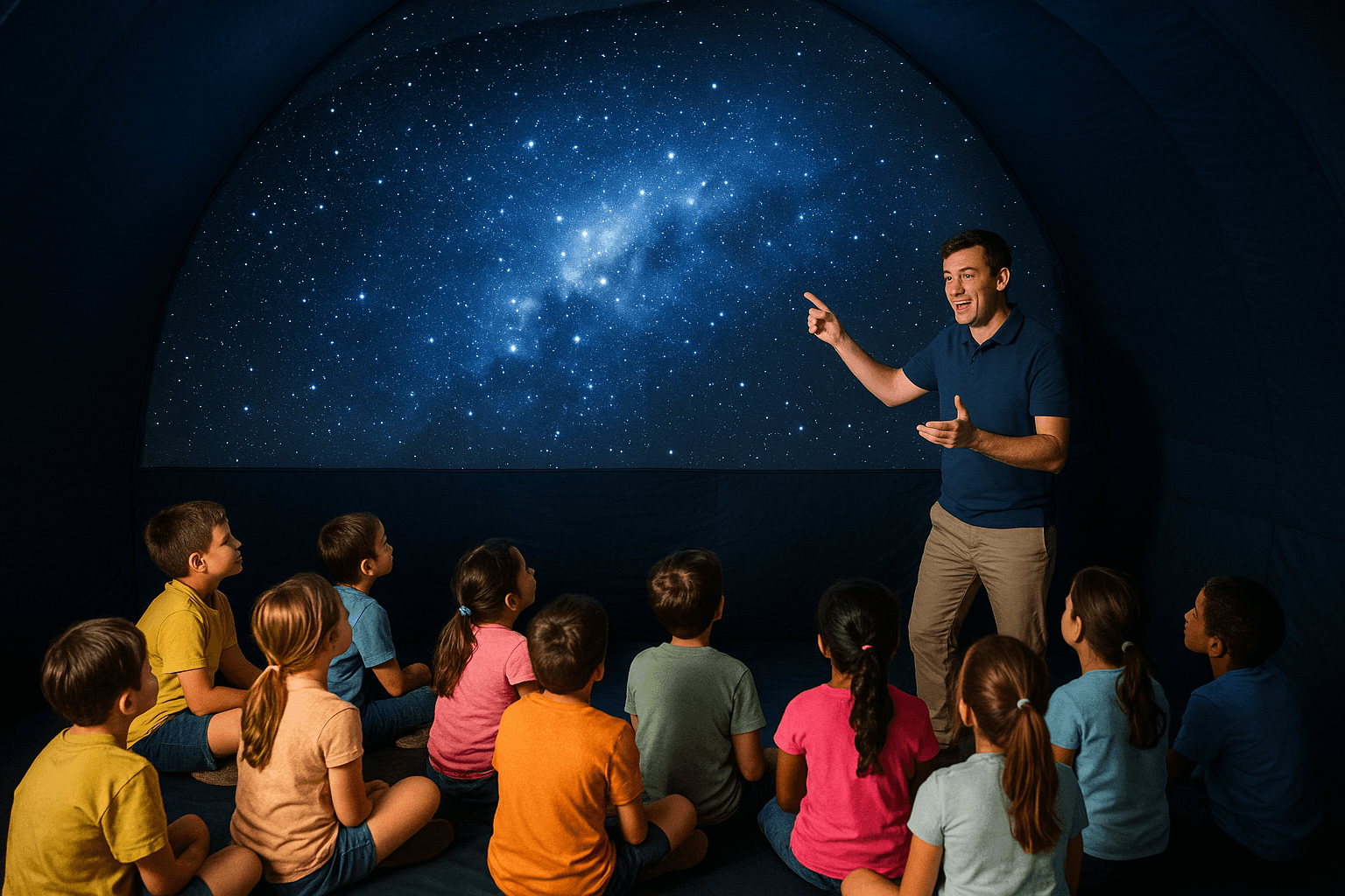 The Mystery Domes Portable Planetarium brings the wonders of the universe directly to schools and communities, creating an immersive experience that sparks curiosity and imagination among learners of all ages. Designed as an inflatable mobile dome, it transforms any ordinary hall or classroom into a breathtaking journey through space, where students can explore the stars, planets, galaxies, and beyond. Unlike traditional learning, which often relies on textbooks and static images, the planetarium offers a 360-degree visual and auditory experience, making science both engaging and memorable.